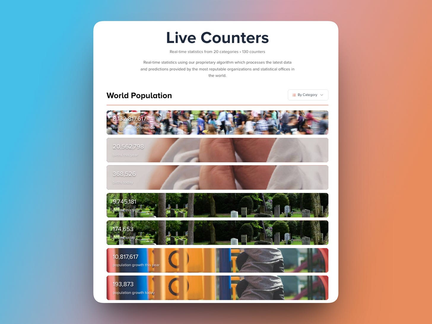 130 Live Counters Across 20 Categories